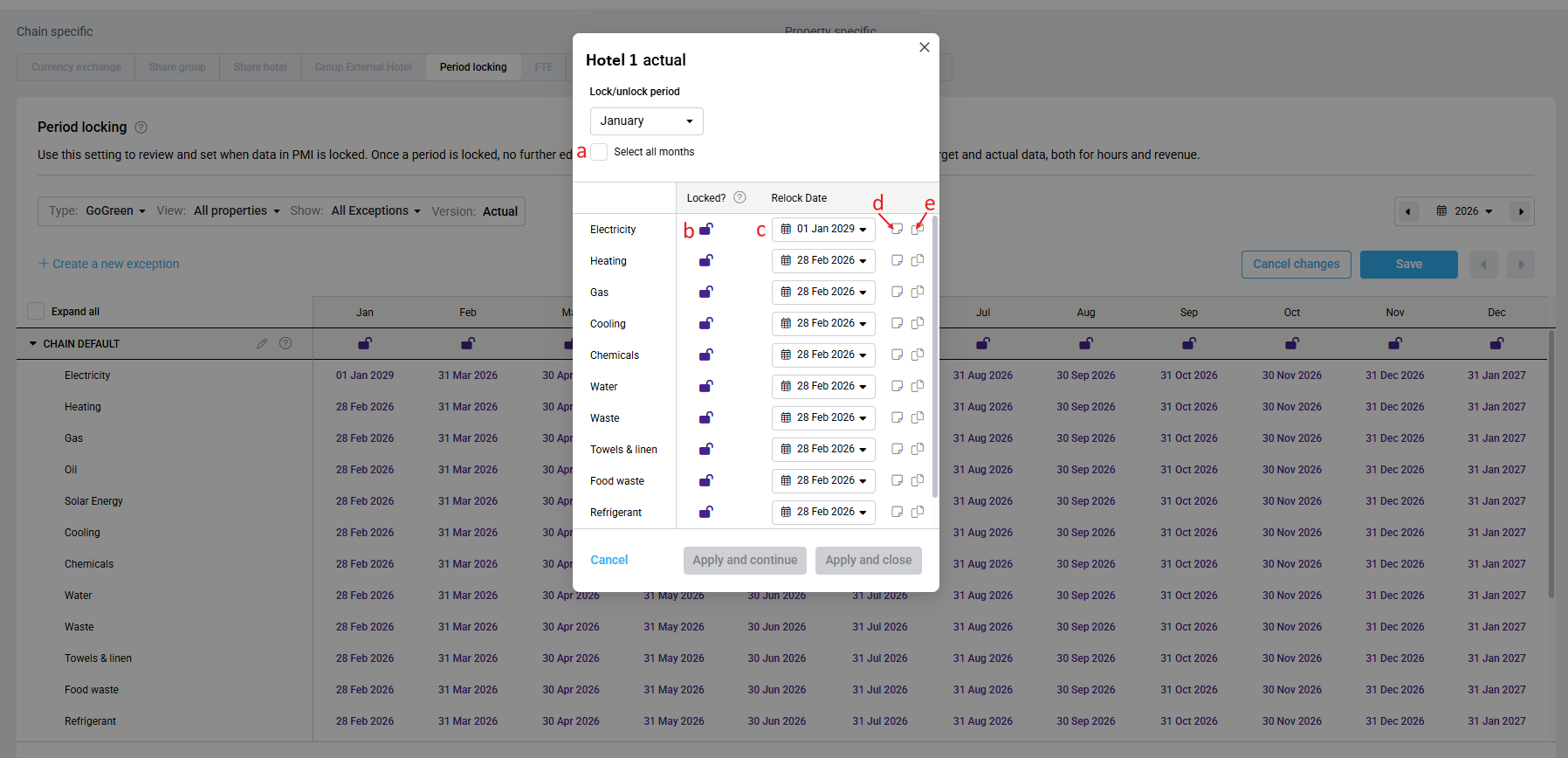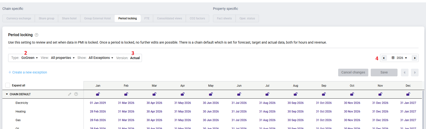 GoGreen Period locking allows you to control when actual consumption data (e.g., electricity, gas, chemicals) can be edited in PMI. This ensures finalized data is protected while still visible for review.