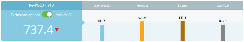 - KPI comparisons: The KPI column displays performance against Forecast, Budget, or Last Year. Read here for more information: KPI indicators