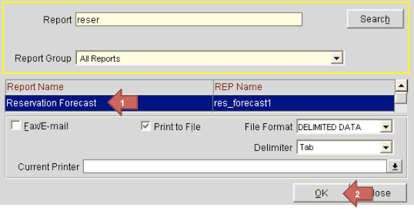 - Back in the report overview, choose Reservations Forecast (REP name should be res_forecast1)