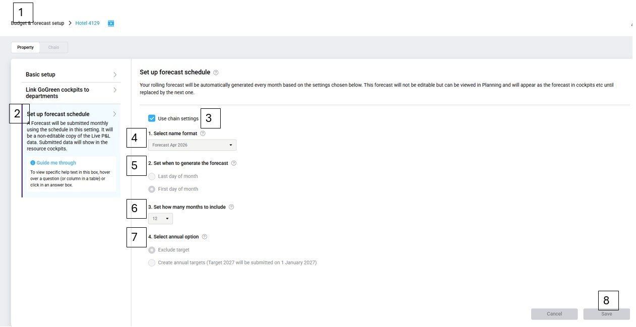 2. Each property can review their setting. If the chain settings do not fit with how they forecast costs they should deselect ‘Use chain settings’, change and save settings just for their property.
