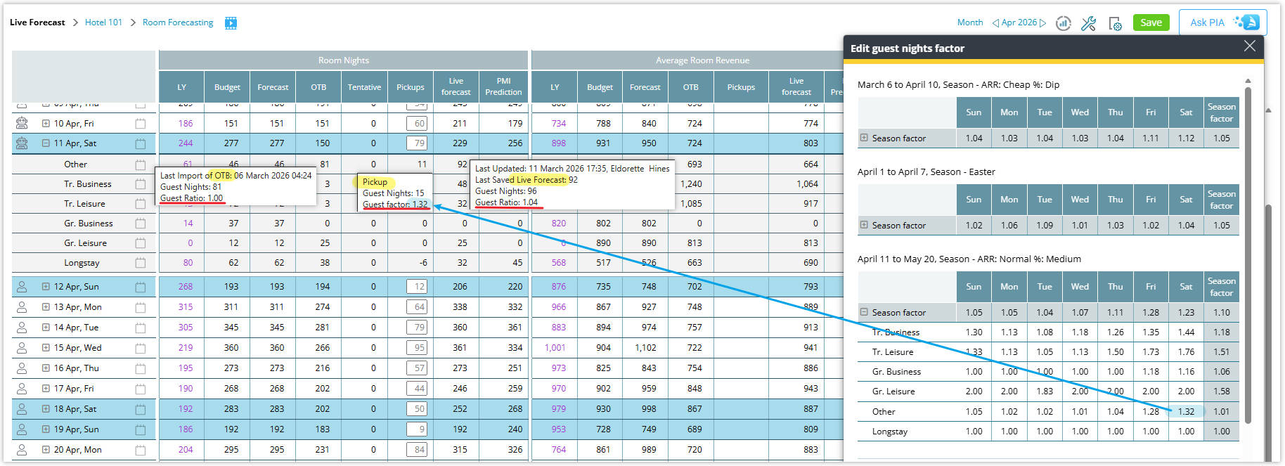 The Guest nights factor is 1.32, automatically generated based on seasons in PMI.