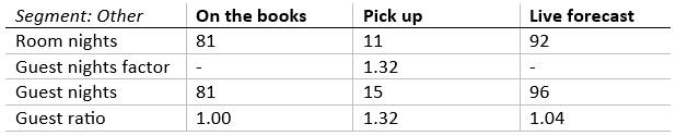 - For pickup, the Guest ratio will always equal the Guest nights factor.