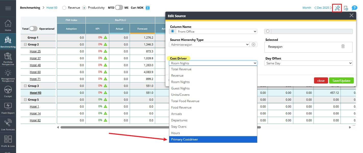 Benchmarking Productivity Setup sources has been updated to use the same primary cost driver as the Cockpit. This makes it easier to keep your performance analysis consistent across PMI.