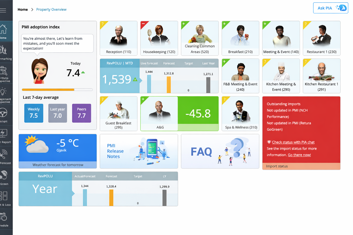 Discrepancies in the imported Room Night live forecast can impact the generation of live forecasts for arrivals, departures, and stayovers. To address this, it's recommended to utilize PMI's auto forecasts. These forecasts are typically more accurate as they rely on machine learning and historical data. Ensuring the accuracy of the imported Room Night live forecast is crucial, as it directly influences the precision of your live forecasts. Regularly review and adjust your forecasts to maintain their reliability and effectiveness.